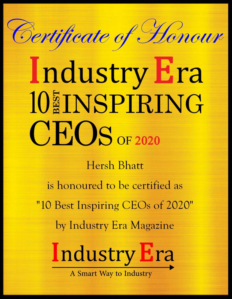 Hersh Bhatt, CEO of atisfy and its subsidiaries, has been named one of the 10 Best Inspiring CEOs of 2020 by Industry Era. The award focuses on the achievements of CEOs of top performing companies across the world.